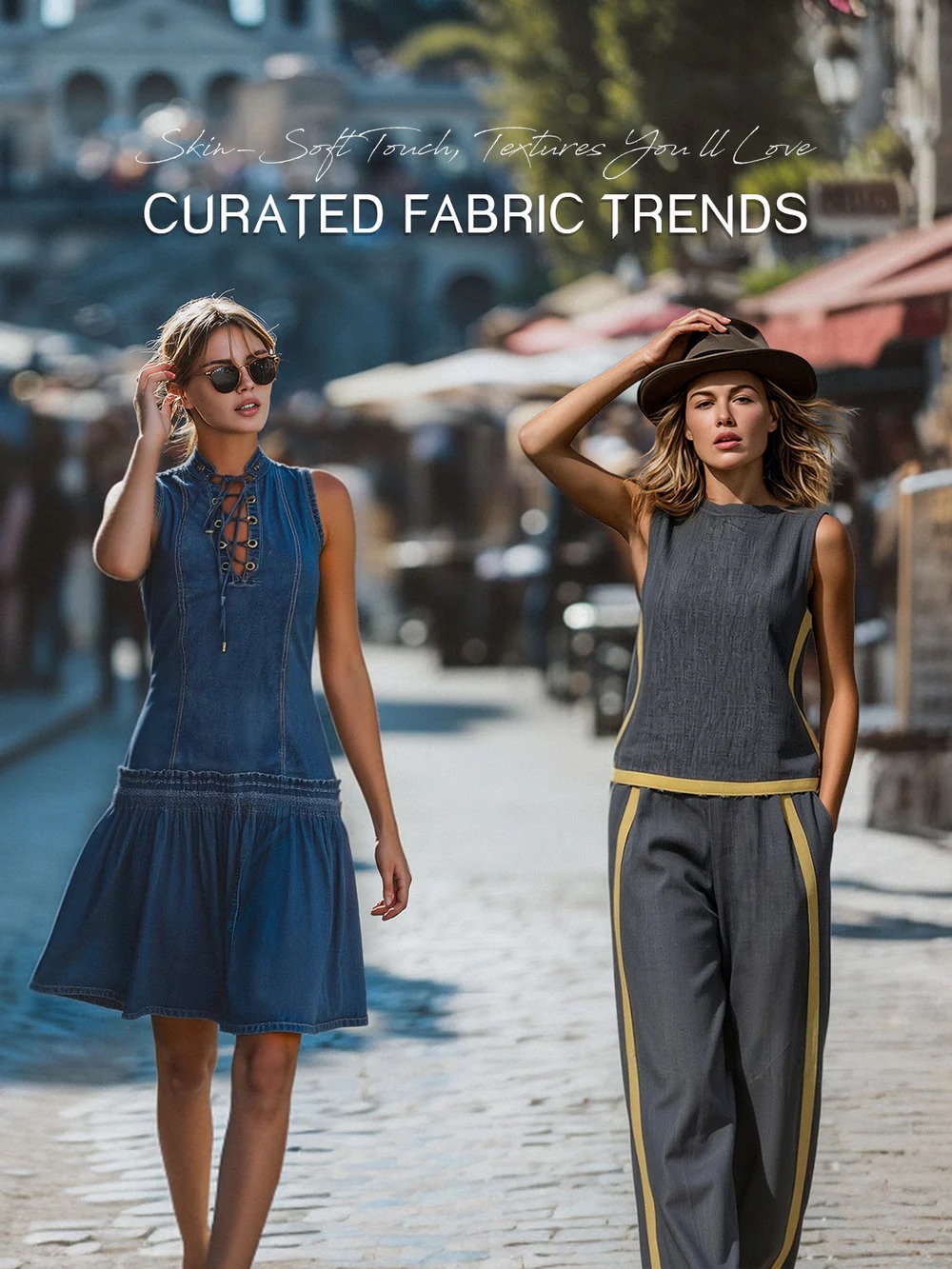 Women’s Cotton Linen Sleeveless Wide-Leg Two-Piece Set
